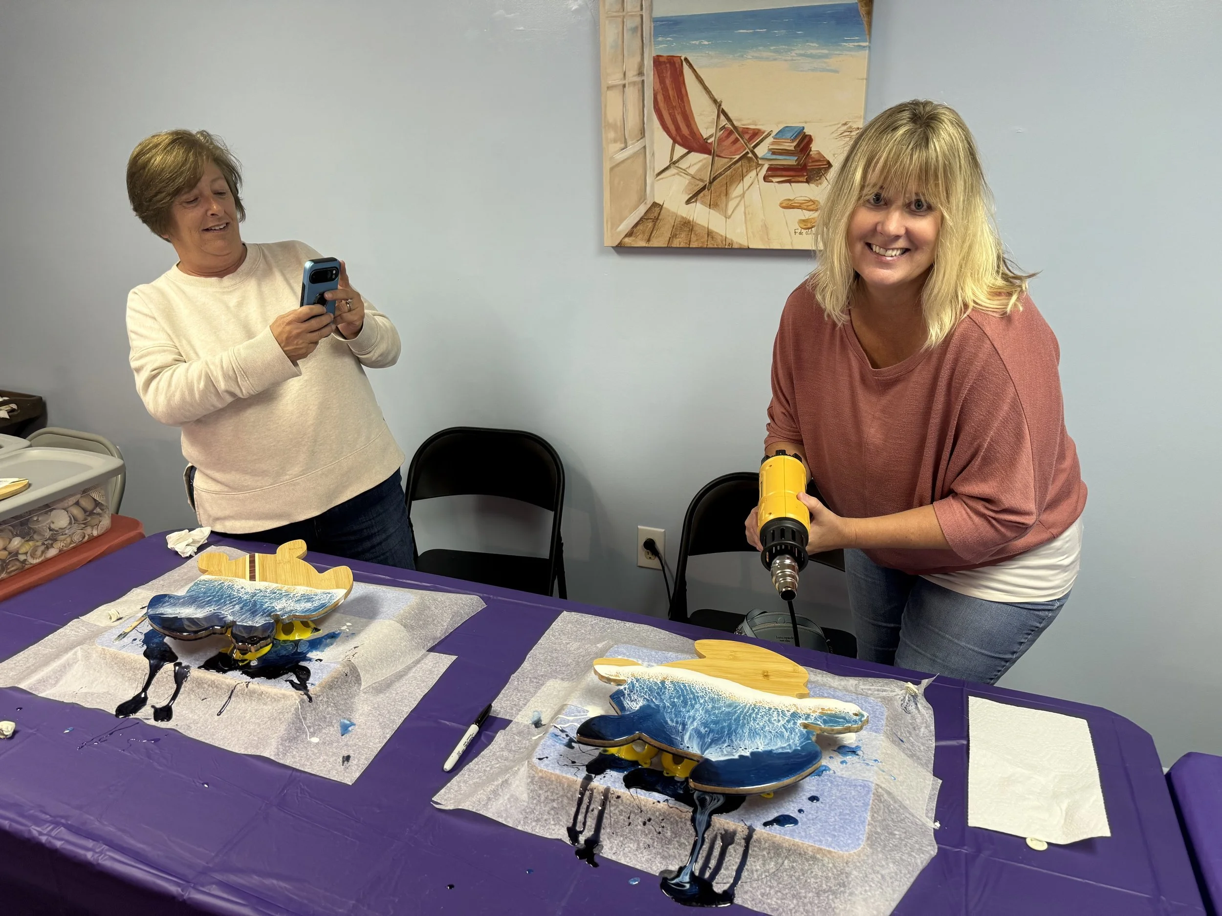 Create your own stunning ocean-inspired art piece in this hands-on resin workshop! In this approximately one-hour class, you’ll design a beautiful ocean wave using professional resin techniques on a wooden board of your choice.